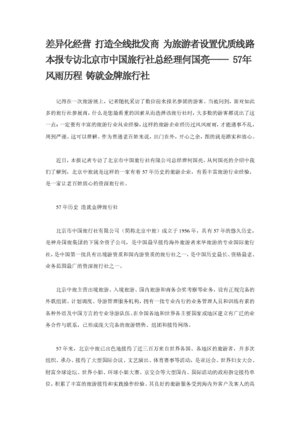 專訪北京市中國旅行社總經理何國亮(14.50KB)