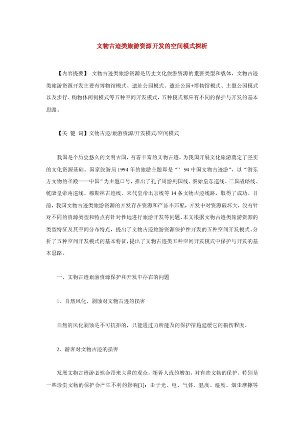 文物古跡類旅游資源開發(fā)的空間模式探析(40.50KB)