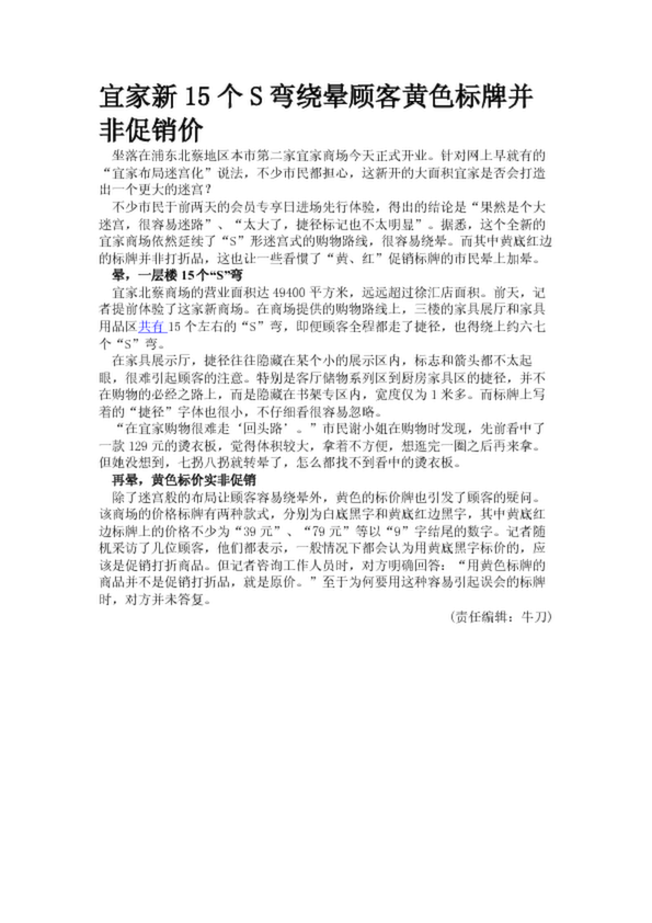 宜家新15個S彎繞暈顧客黃色標牌并非促銷價(19.40KB)