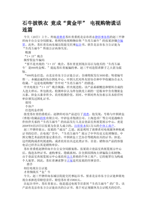 石牛披鐵衣 竟成“黃金甲” 電視購物謊話連篇(32.13KB)