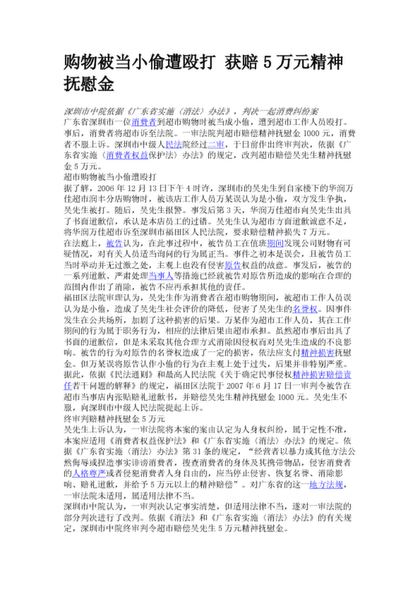 購(gòu)物被當(dāng)小偷遭毆打 獲賠5萬元精神撫慰金